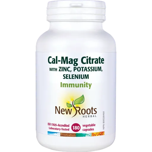 A factor in the maintenance of good health. Helps to maintain healthy skin. Helps the body to metabolize nutrients. Helps in the development and maintenance of bones and teeth. Helps support the immune system. New Roots Herbal’s Calcium Magnesium Citrat