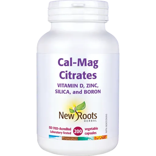 Each vegetable capsule contains 100 mg of elemental calcium as a highly bioavailable mineral salt formulated with the ideal proportion of magnesium and additional cofactors, to ensure sound skeletal health and combat osteoporosis. New Roots Herbal’s Cal
