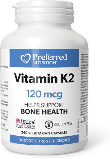 Preferred Nutrition Vitamin K2 supports healthy bones with MK-7, the most bioavailable form of vitamin K2. Vitamin K2 plays a role in bone health by directing calcium toward bones and teeth, and away from arteries and soft tissue. Each vegetarian capsule p