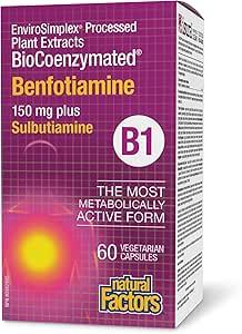 Natural Factors BioCoenzymated Benfotiamine provides a superior source of thiamine compared to thiamine hydrochloride as it provides a higher bioavailability. This formula contains 150 mg of benfotiamine with sulbutiamine to support nerve function and ener