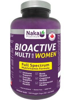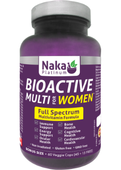 Naka Platinum's high quality Bioactive Multi For Women is a full spectrum multivitamin and mineral formula. Formulated with women in mind, Bioactive Multi has optimal dosages of essential vitamins and minerals to ensure your getting all you need to live an