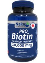 Biotin from Naka Platinum contains 10,000mcg of this important B complex vitamin. Biotin is a water-soluble vitamin necessary for normal growth and body function. Naka's Biotin is a key regulatory element in gluconeogenesis, fatty acid synthesis, and in th
