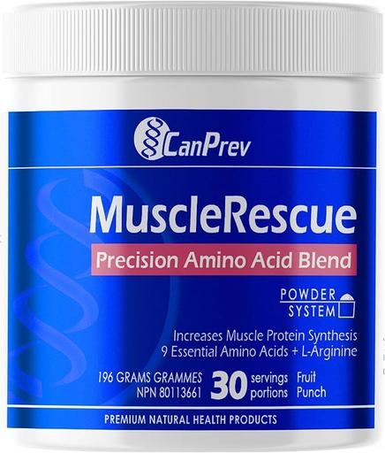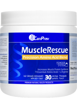 CanPrev’s MuscleRescue is an optimized formula powered by Reginator®, a proprietary blend featuring the most efficient ratio of essential amino acids (EAAs) needed for protein synthesis and muscle regeneration. In order to repair and build new muscle,