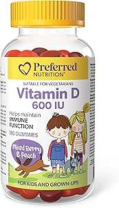 Preferred Nutrition Vitamin D3 600 IU gummies help support a strong immune system and the development and maintenance of bones and teeth. These vegetarian-friendly gummies are gelatin-free and non-GMO, and come in delicious mixed-berry and peach flavours,