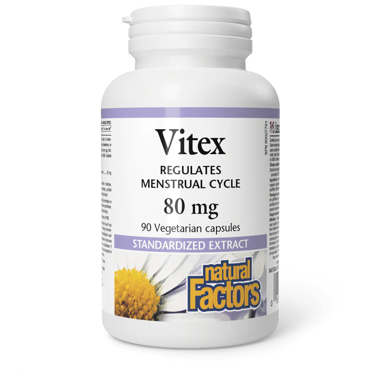 Natural Factors Vitex Standardized Extract helps balance female hormones to reduce the symptoms of PMS. This formula provides support for the female reproductive system, while effectively relieving the symptoms of PMS, including breast tenderness, bloating, fatigue, and irritability. Each vegetarian capsule contains vitex, standardized to 0.6% aucubin. Reduces headaches Decreases feelings of anxiety or irritability Stabilizes mood swings Decreases breast tenderness May increase milk production for nursing mothers